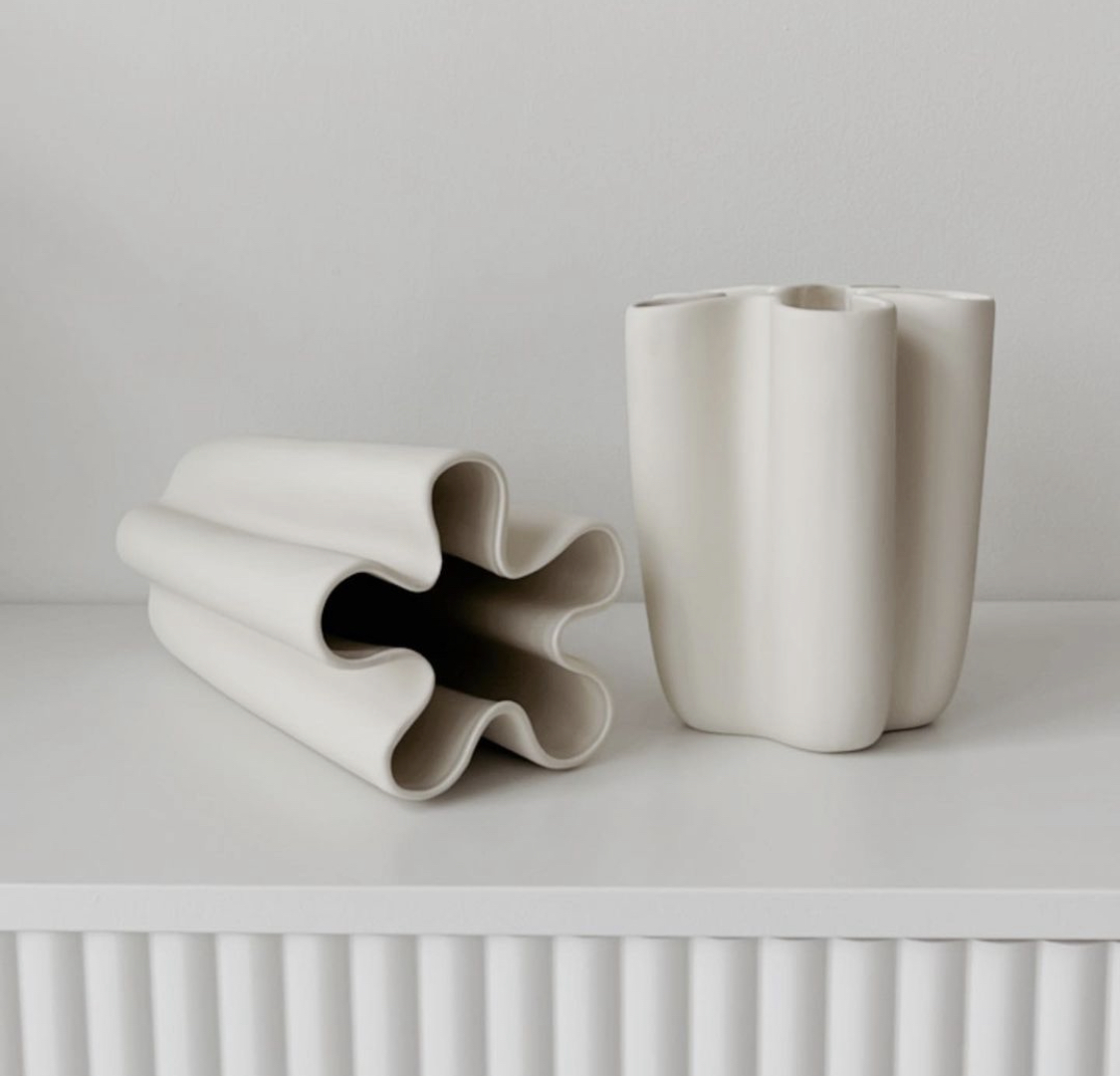 Cooee “Drift vaas” –  17cm ja 30cm. Cooee vaaside sarjast kõige uuem tulija, vaasi tekstuur karedam ja liivasem, värvivalikus vanilje ja pepper. Kevadel 2021 pakume valikus ka sama sarja vanilje toonis vaasi suurusega 55cm.