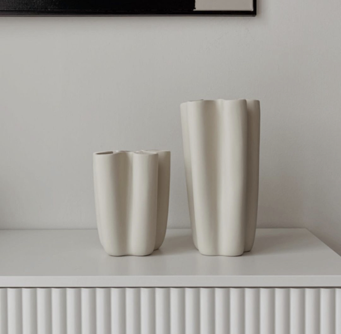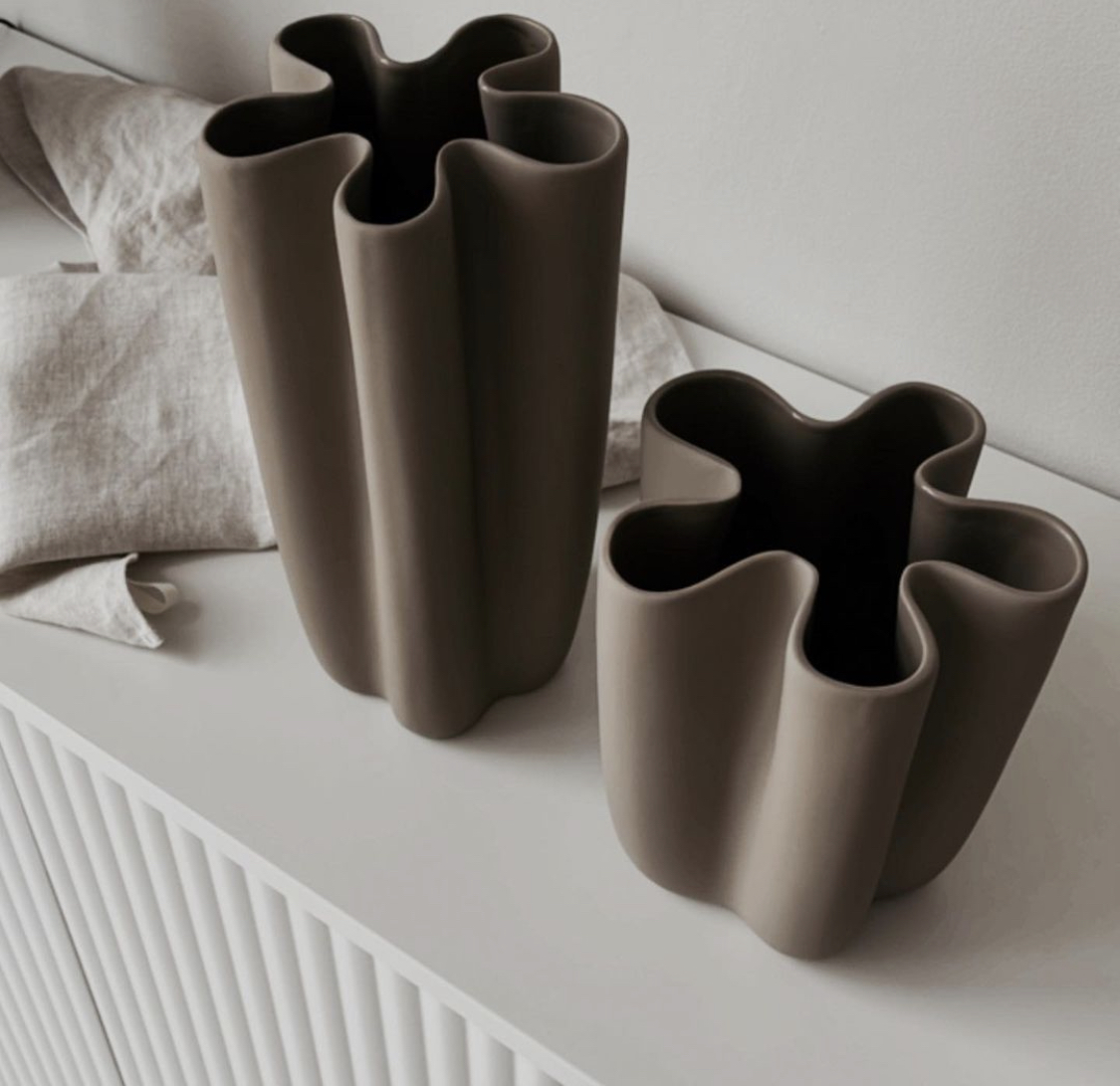 Cooee “Drift vaas” –  17cm ja 30cm. Cooee vaaside sarjast kõige uuem tulija, vaasi tekstuur karedam ja liivasem, värvivalikus vanilje ja pepper. Kevadel 2021 pakume valikus ka sama sarja vanilje toonis vaasi suurusega 55cm.