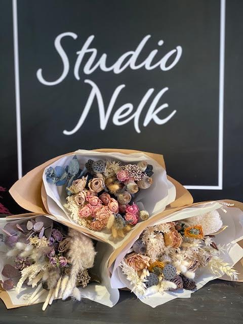Oleme loonud Studio Nelk kuivlilledest seaded eesmärgiga täita vaasid kaua säilivate ja hoolitsemisvabade seadetega. Seades leiduvad lilled on kuivatatud või stabiliseeritud – lillevalik on looduslik ja kunstlike materjale kasutatud ei ole.