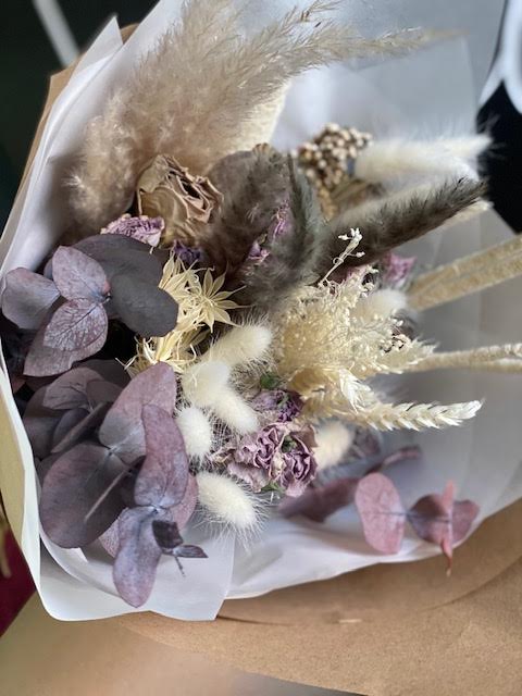 Kuivlilledest lillekimp saabub teieni soovi korral meie signatuurkarbis (välja arvatud, kui seade jääb pikemaks kui 70cm), kaunilt siidipaberisse mähituna.