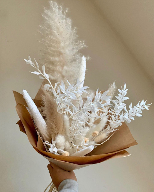 Valikus minimalistlik, valge- või romantilises stiilis kuivlillekimp.